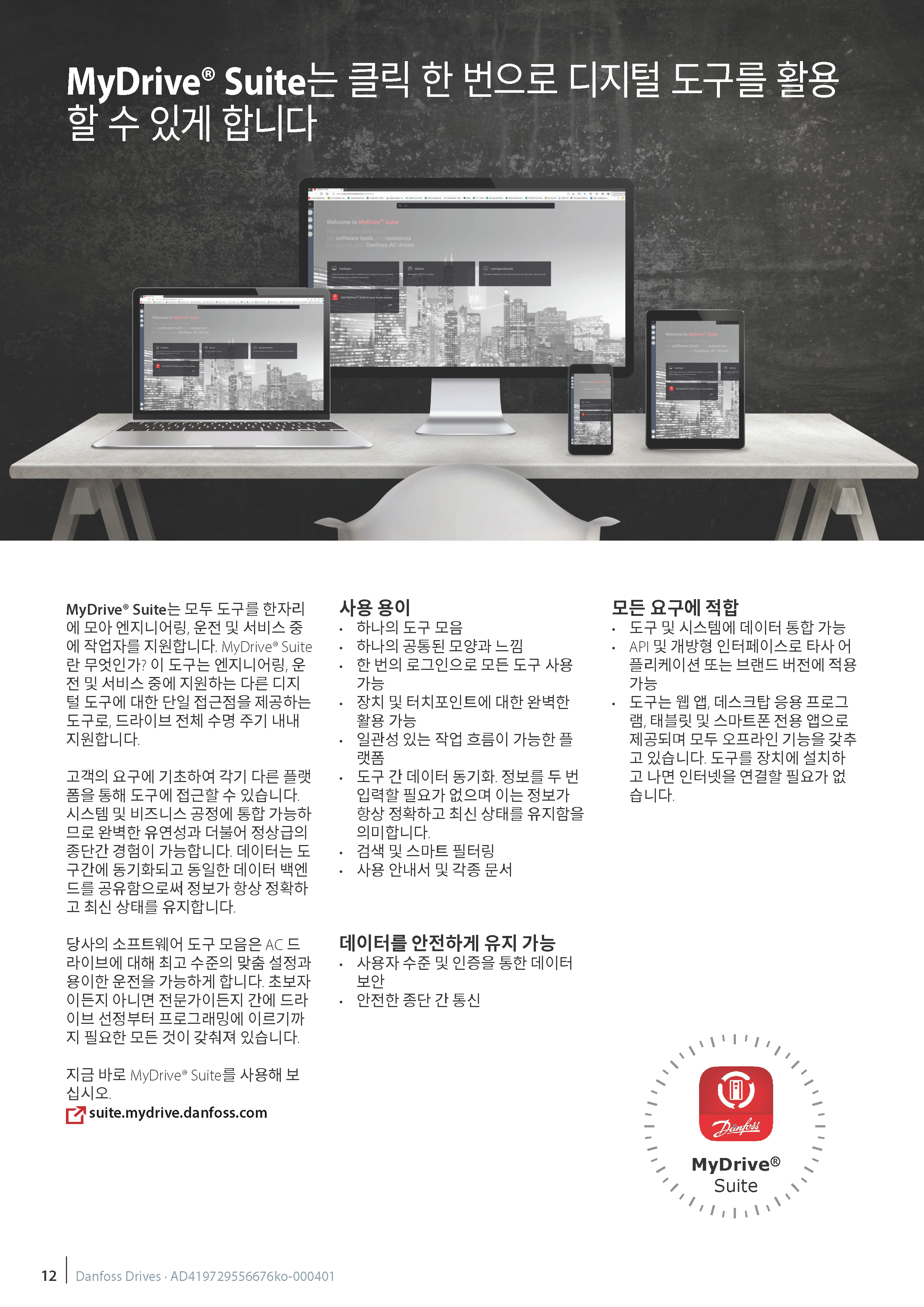 이 드라이브는 탁월한 모터 제어 및 기계 제동 성능을 자랑합니다. 새로운 기능에는 개회로의 토크 제어, 모터 잠금 감지, 영구 자석 모터 제어, 내장 제어 패널뿐만 아니라 MyDrive® Suite 디지털 도구와의 연결성 등이 포함됩니다.
