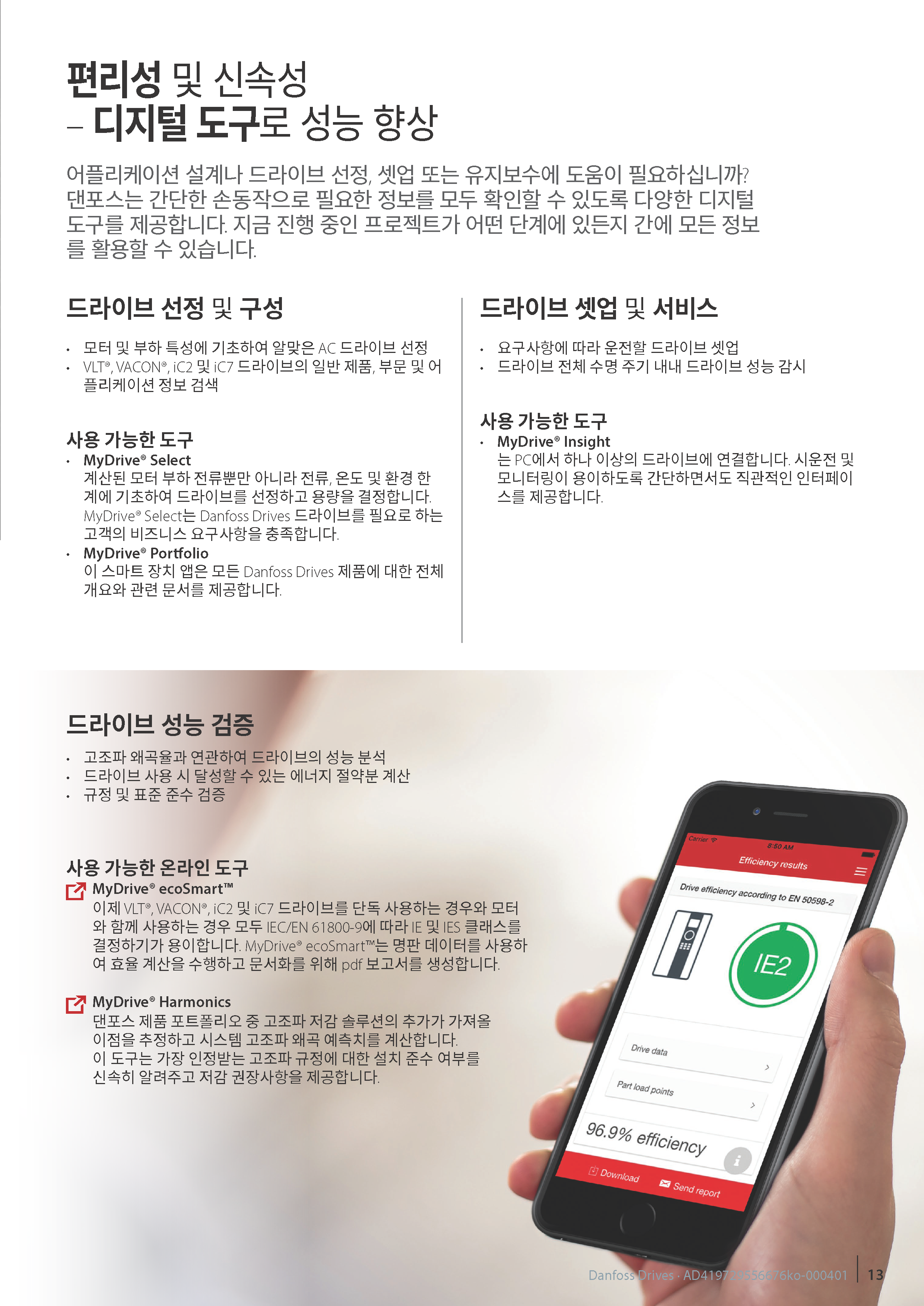 어플리케이션에 가장 적합한 고효율 모터를 자유롭게 선택할 수 있습니다. iC2-Micro는 전체 전력 범위에서 VVC+의 개회로에서 고효율 영구 자석 모터 제어 기능을 제공합니다.